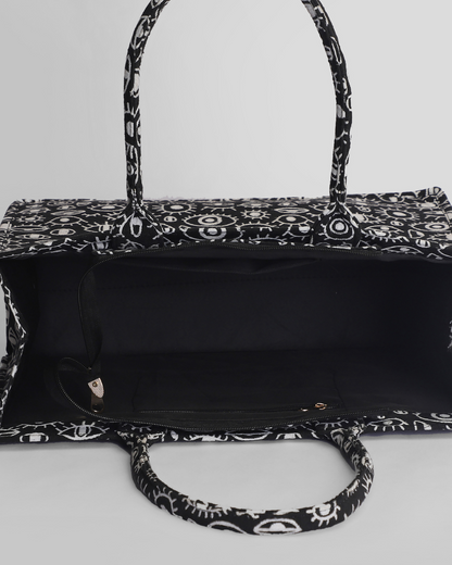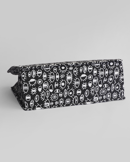 She’s not just a bag—she’s your aura protector, your oversized bestie, and your silent guardian against bad energy. With an all-over evil eye print, this tote speaks louder than words. She’s made for the girl who journals her manifestations, burns incense with intention, and always trusts her intuition more than her notifications. Spacious enough to carry your chaos and cute enough to match your energy, this one’s all about power in pattern.